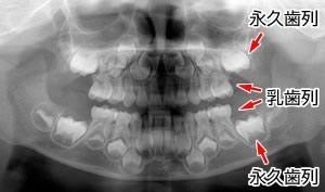 乳歯と永久歯の交換は6歳頃から始まり、永久歯が成長しながら乳歯を押し上げ、7年ほどの時間をかけて徐々に生えかわります。