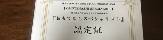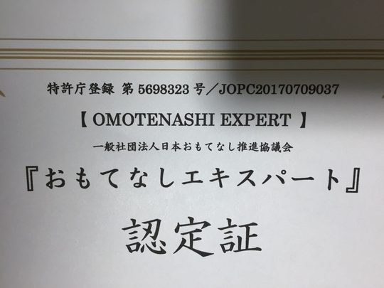 今回そのセミナーを受け、最後には「おもてなしエキスパート」の認定証を