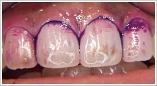 プラークには丁寧なブラッシングでも落とせないものがあります。その場所を確認します。